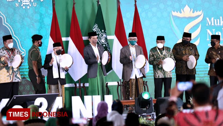 TIMES Bontang/Presiden Jokowi (Joko Widodo) membuka secara resmi Muktamar Ke-34 Nahdlatul Ulama di Pondok Pesantren Darussa’adah, Gunung Sugih, Lampung Tengah, Rabu (22/12/2021). (FOTO: Moh Ramli/TIMES Indonesia)