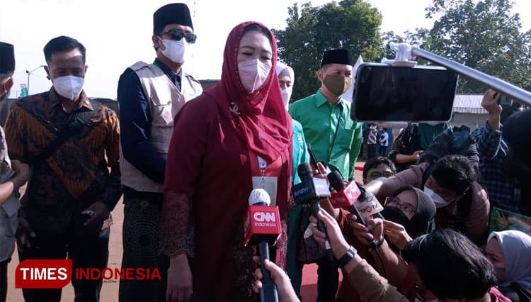 TIMES Bontang/Putri Abdurrahman Wahid (Gus Dur) Yeny Wahid saat diwawancarai oleh awak media. (FOTO: Moh Ramli/TIMES Indonesia)